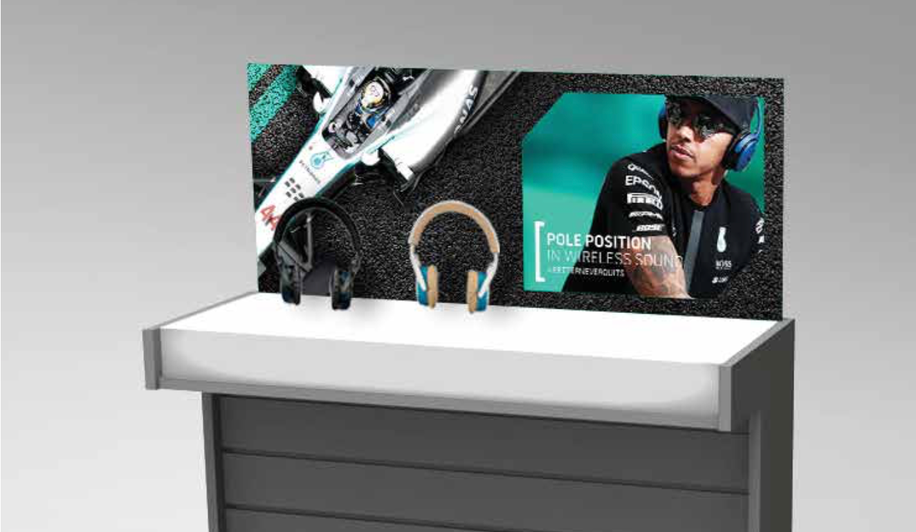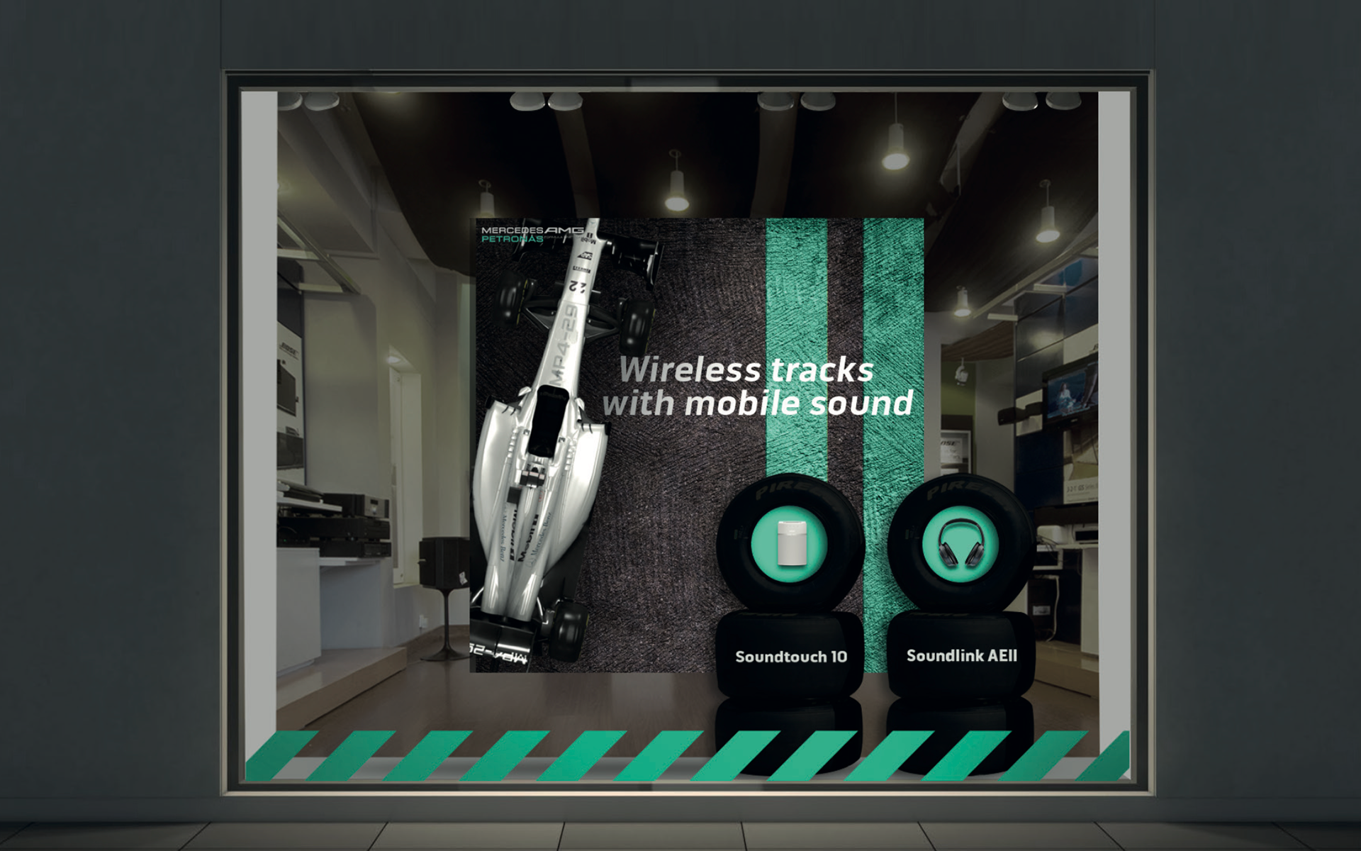 Retail campaign, bose and mercedes F1 team. Concept and design.